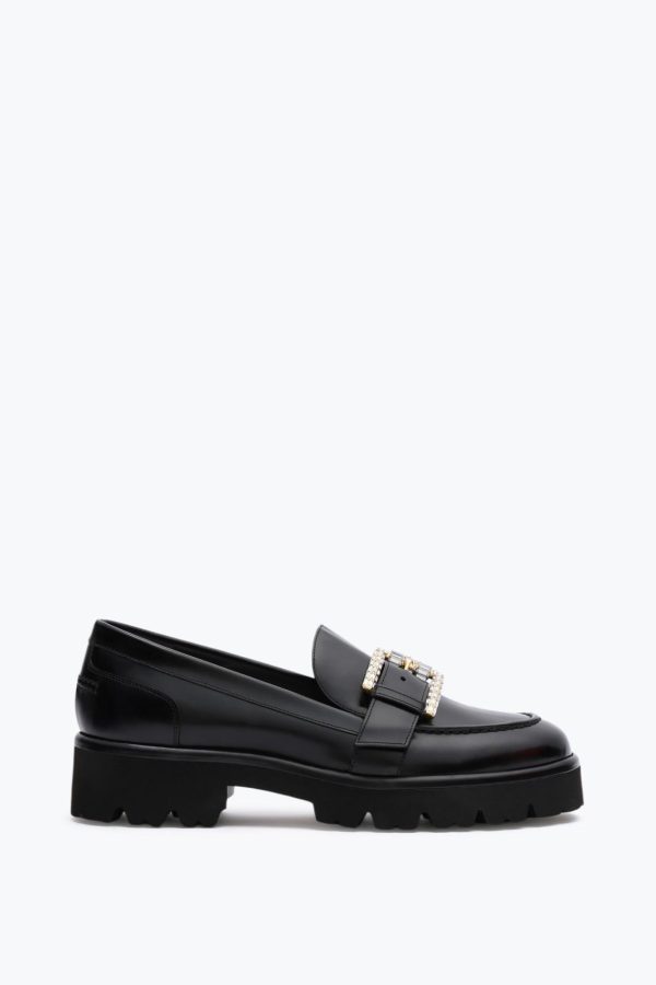The quintessential fall model gets a makeover in this version with a chunky sole and golden buckle with crystal baguettes. With a preppy style, the Martha loafer is versatile and modern, perfect from day to evening thanks to the house’s distinctive sparkling touch.