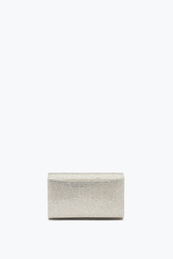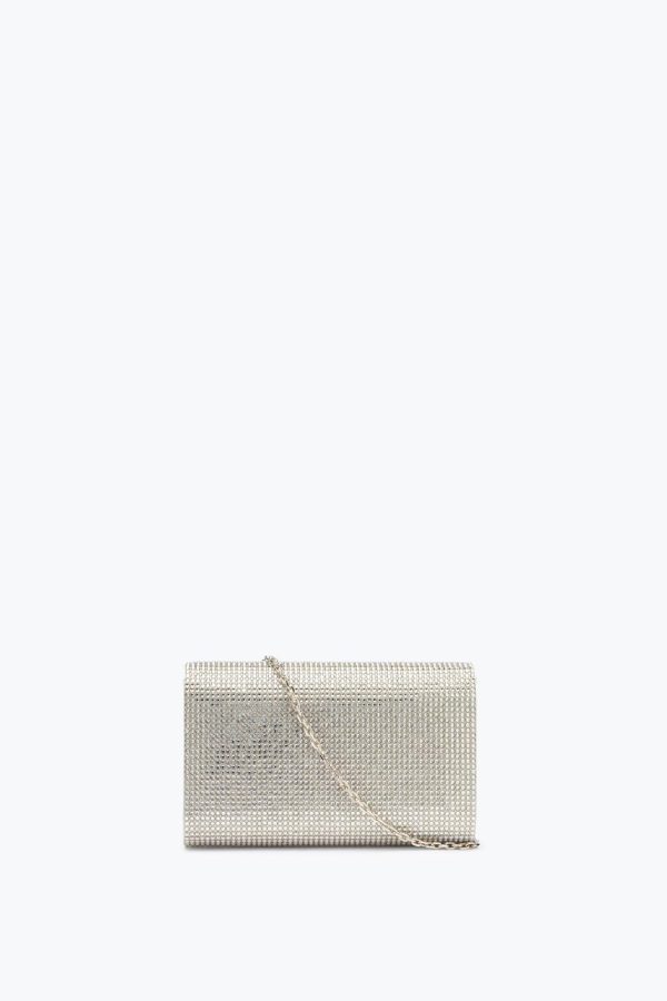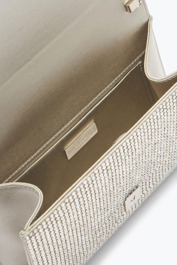 This silver jewel clutch bag AIDA is an elegant and refined model, distinguished its unmistakable Made in Italy design. This satin clutch is decorated matching rhinestones and it features a removable shoulder strap. Perfect for adding a touch of light to a total black look, it can embellish the most sophisticated outfits.