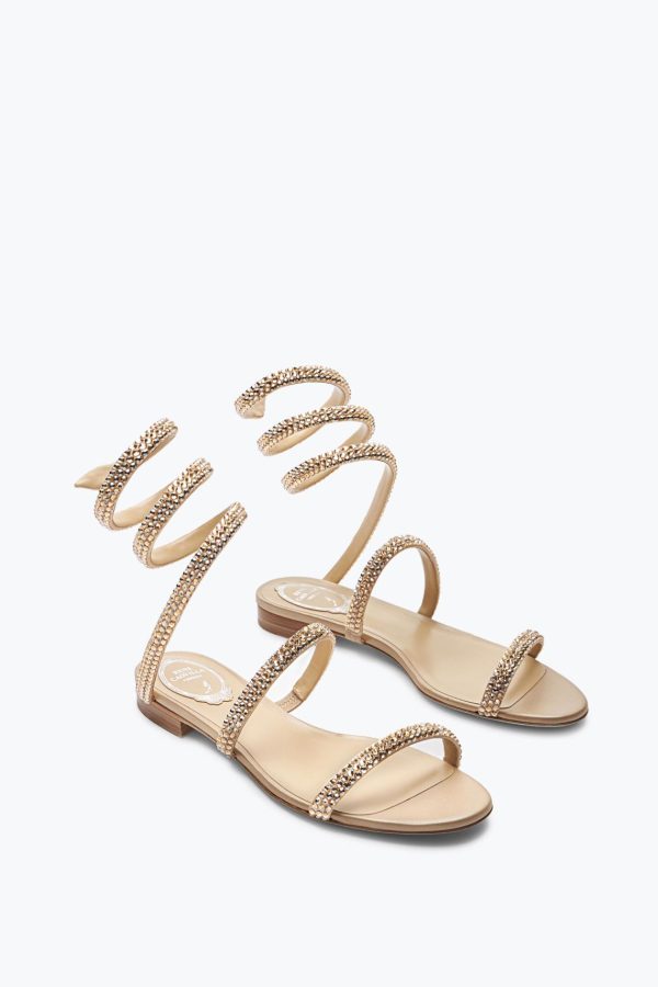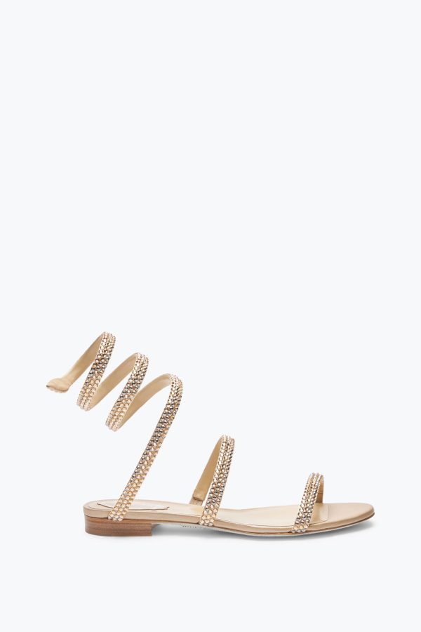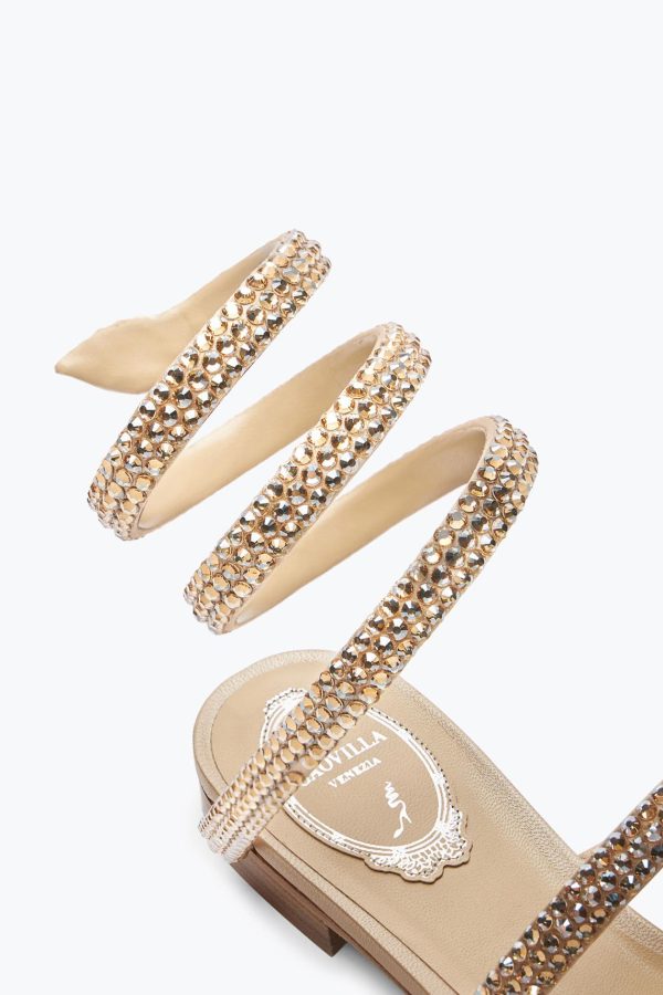 Rene Caovilla Flats | Jeweled Cleo Champagne Flat Sandal With Crystals ™ Women