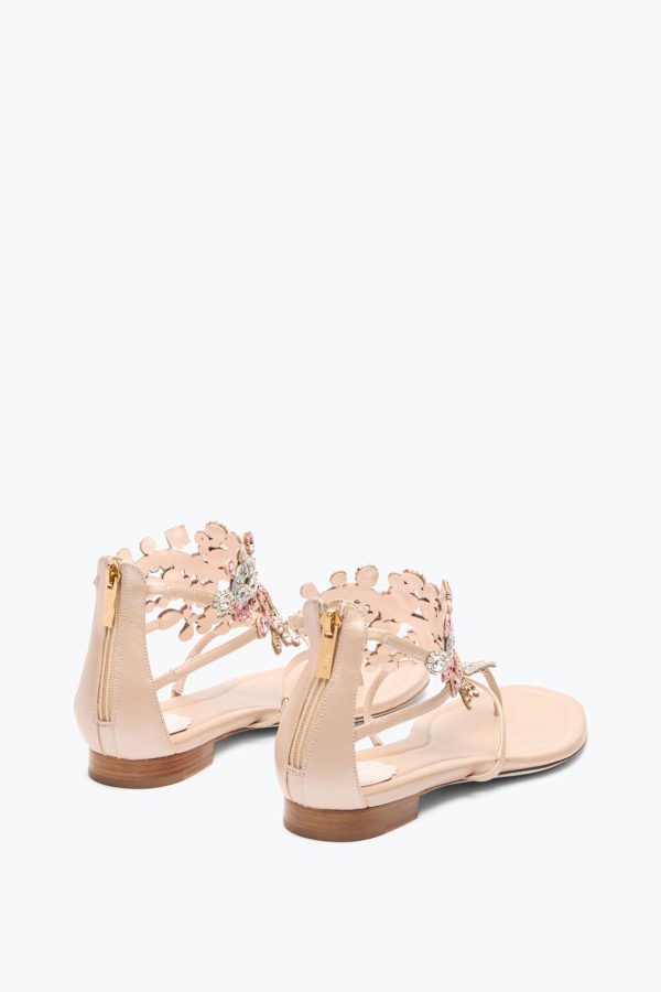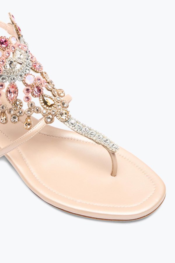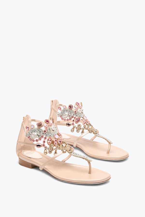 Venice, the maison’s source of inspiration, has been transformed into a shoe that captures its artisanal essence and undisputed elegance: the Veneziana sandal is brought to life. The embroidered multicolored crystals envelop the foot in a sleek embrace, while the flat sole makes it very comfortable, to be worn day and night.