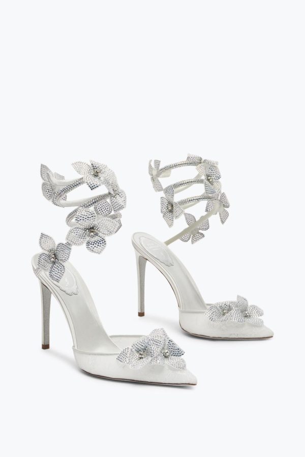 Classy and timeless, the Floriane white pump embodies the essence of the maison’s excellent craftsmanship and refined elegance. Adorned with flowers made of lace and tulle, embellished with hand-applied crystals and enhanced by the white base, this ponted-toe style is perfect for the most romantic evenings and celebrations.