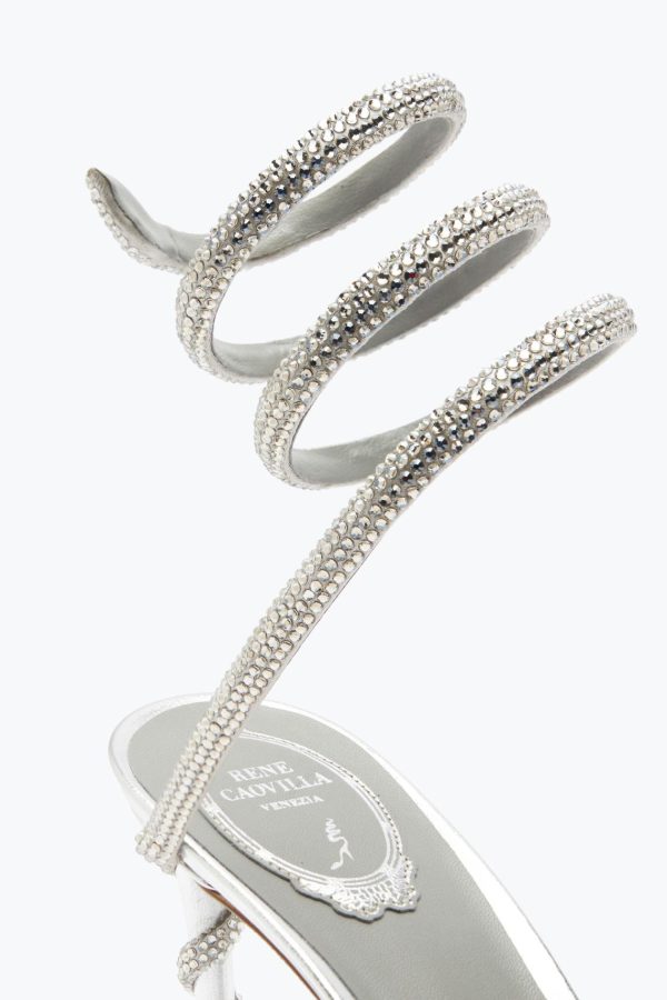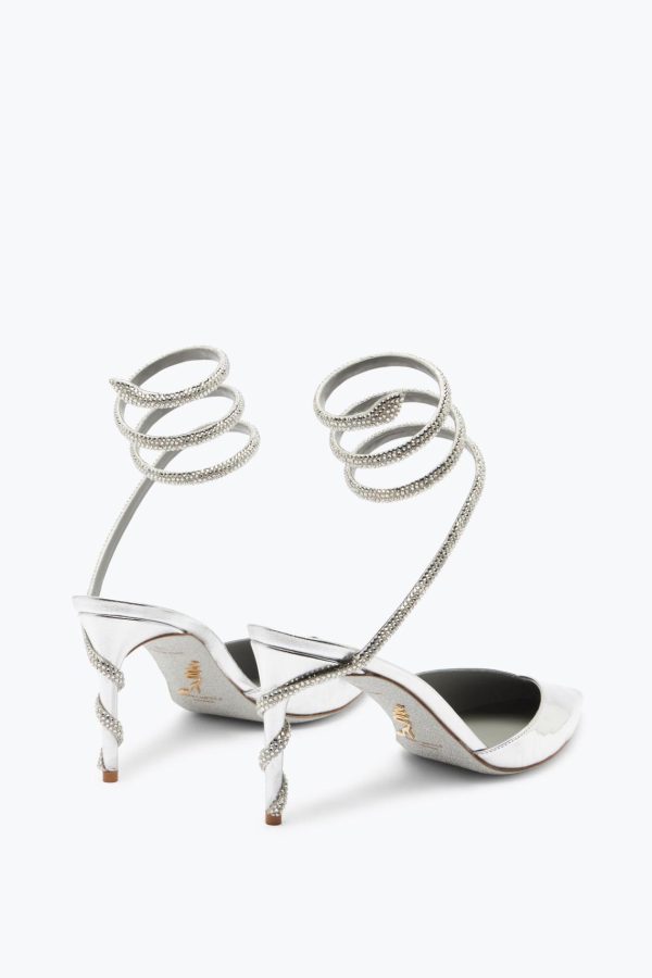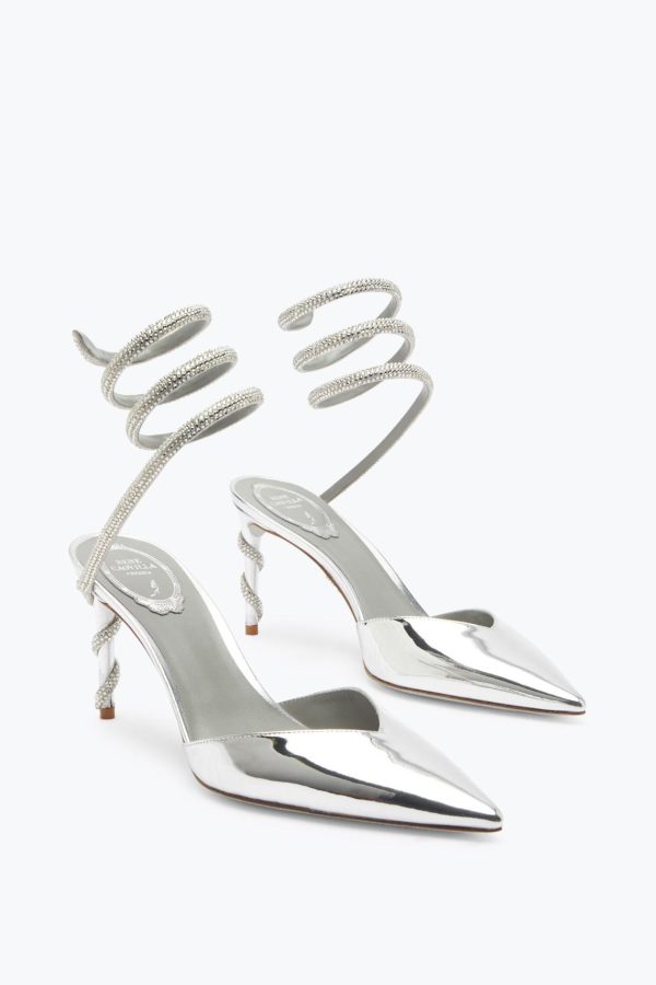 The metallic silver slingback pump goes beyond the seasons. It becomes a must-have, ideal for formal occasions, but also gives a contemporary twist to any evening look. With a stiletto heel, the iconic rhinestone-covered serpente and stardust sole, it is the style to keep forever.
