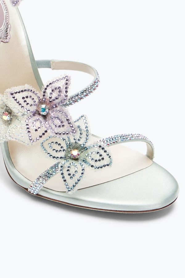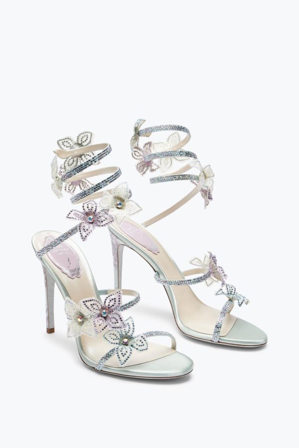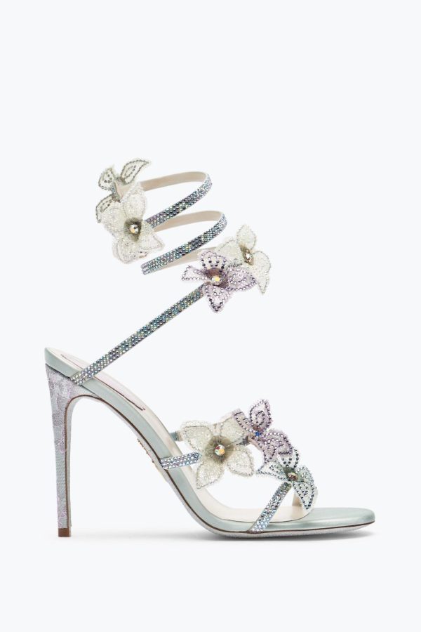 Quintessential of the René Caovilla style, the Floriane sandal combines refinement and craftsmanship with undisputed charm. Its peculiarity lies in the richly decorated flowers applied on the lists and on the iconic serpent, bringing a breath of spring to the look.